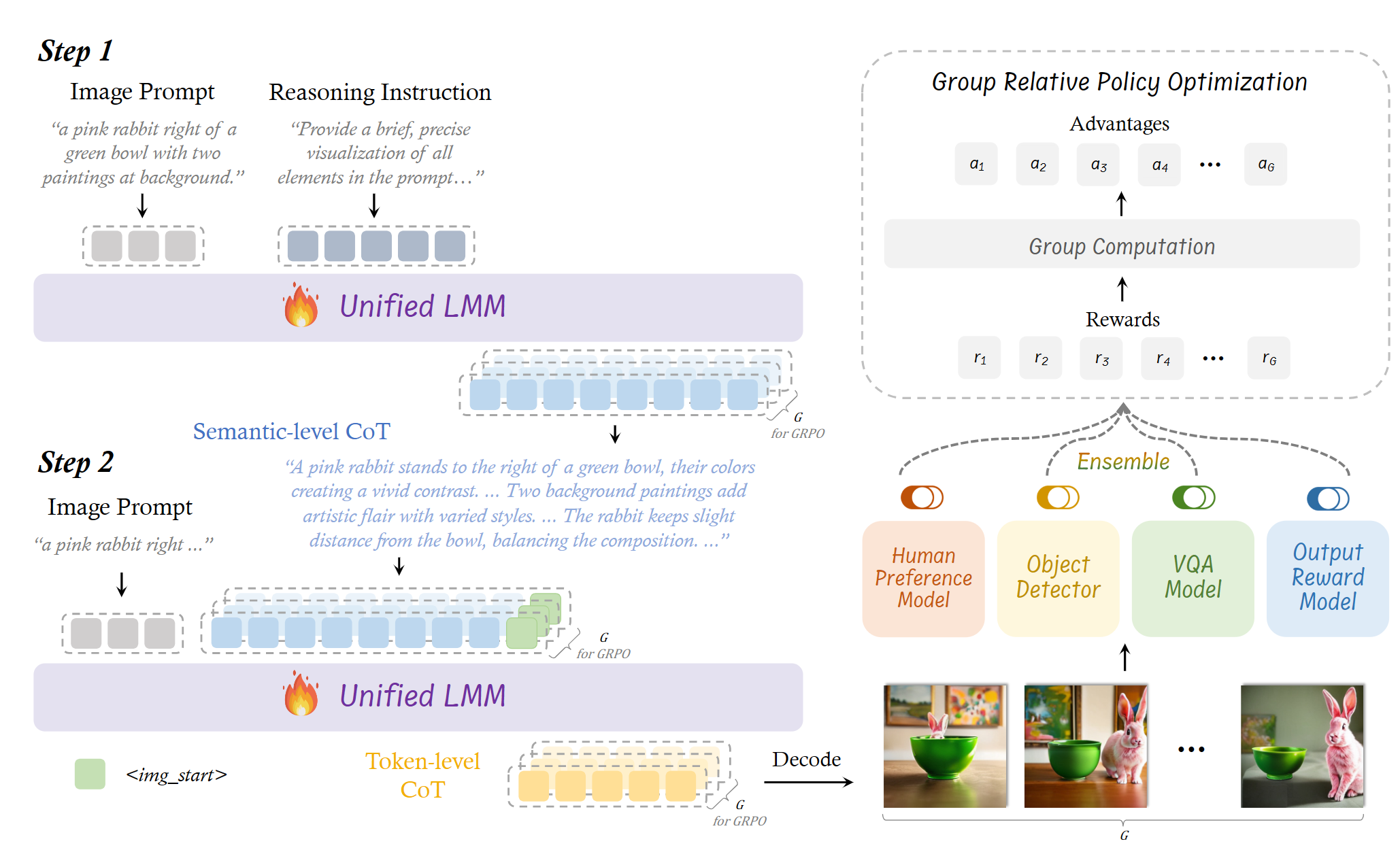 - 对于每个 image prompt,会生成 N 个图像(N 组 token-level CoT)