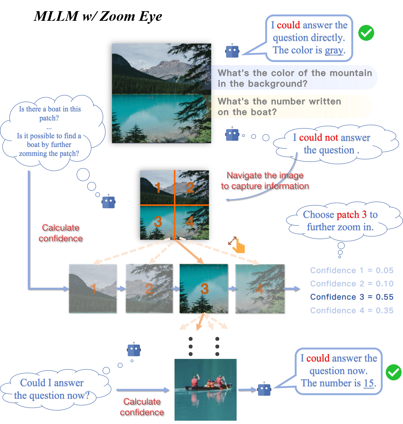 - 把这个区域(局部图像)和问题q一起输入MLLM,生成最终回答